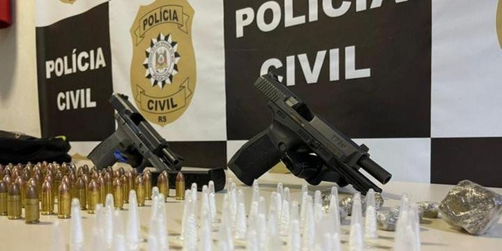 A Polícia Civil confirmou, nesta segunda-feira (2), que prendeu em flagrante um homem e uma mulher por posse irregular de arma de fogo de uso restrito e tráfico de drogas na avenida Teresópolis, na Zona Sul de Porto Alegre. A corporação aponta que a dupla integra uma facção oriunda do bairro Bom Jesus, na Zona Leste, e tinha planos de participar de um ataque a tiros contra traficantes rivais, na Vila Cruzeiro.